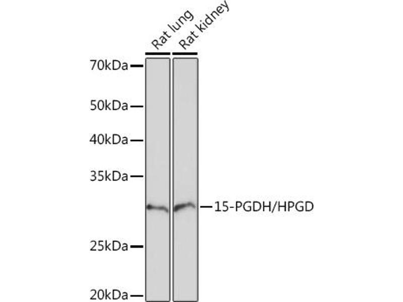 This gene encodes a member of the short-chain nonmetalloenzyme alcohol dehydrogenase protein family. The encoded enzyme is responsible for the metabolism of prostaglandins, which function in a variety of physiologic and cellular processes such as inflammation. Mutations in this gene result in primary autosomal recessive hypertrophic osteoarthropathy and cranioosteoarthropathy. Multiple transcript variants encoding different isoforms have been found for this gene. [provided by RefSeq, Mar 2009],15-PGDH, PGDH, PGDH1, PHOAR1, SDR36C1,Cell Intrinsic Innate Immunity Signaling Pathway,Immunology & Inflammation,Signal Transduction,HPGD