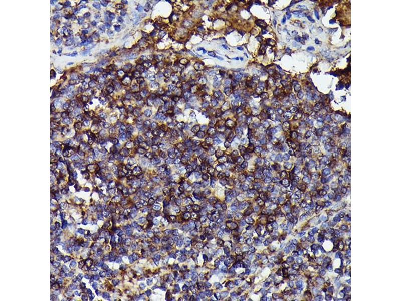 Immunoglobulins (Ig) are the antigen recognition molecules of B cells. An Ig molecule is made up of 2 identical heavy chains and 2 identical light chains joined by disulfide bonds so that each heavy chain is linked to a light chain and the 2 heavy chains are linked together. Each Ig heavy chain has an N-terminal variable (V) region containing the antigen-binding site and a C-terminal constant (C) region, encoded by an individual C region gene, that determines the isotype of the antibody and provides effector or signaling functions. The heavy chain V region is encoded by 1 each of 3 types of genes: V genes, joining (J) genes, and diversity (D) genes. The C region genes are clustered downstream of the V region genes within the heavy chain locus on chromosome 14. The IGHM gene encodes the C region of the mu heavy chain, which defines the IgM isotype. Naive B cells express the transmembrane forms of IgM and IgD on their surface. During an antibody response, activated B cells can switch to the expression of individual downstream heavy chain C region genes by a process of somatic recombination known as isotype switching. In addition, secreted Ig forms that act as antibodies can be produced by alternative RNA processing of the heavy chain C region sequences. Although the membrane forms of all Ig isotypes are monomeric, secreted IgM forms pentamers, and occasionally hexamers, in plasma.,AGM1, MU, VH,Immunology & Inflammation,IGHM