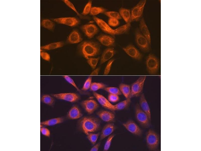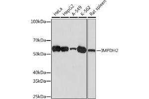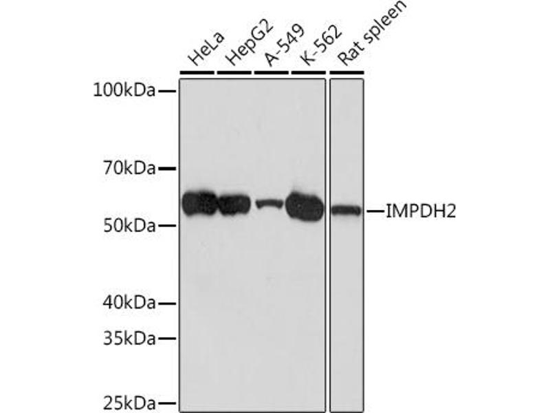 This gene encodes the rate-limiting enzyme in the de novo guanine nucleotide biosynthesis. It is thus involved in maintaining cellular guanine deoxy- and ribonucleotide pools needed for DNA and RNA synthesis. The encoded protein catalyzes the NAD-dependent oxidation of inosine-5'-monophosphate into xanthine-5'-monophosphate, which is then converted into guanosine-5'-monophosphate. This gene is up-regulated in some neoplasms, suggesting it may play a role in malignant transformation. [provided by RefSeq, Jul 2008],IMPD2, IMPDH-II,Cancer,Cell Biology & Developmental Biology,Endocrine & Metabolism,Growth factors,Signal Transduction,IMPDH2