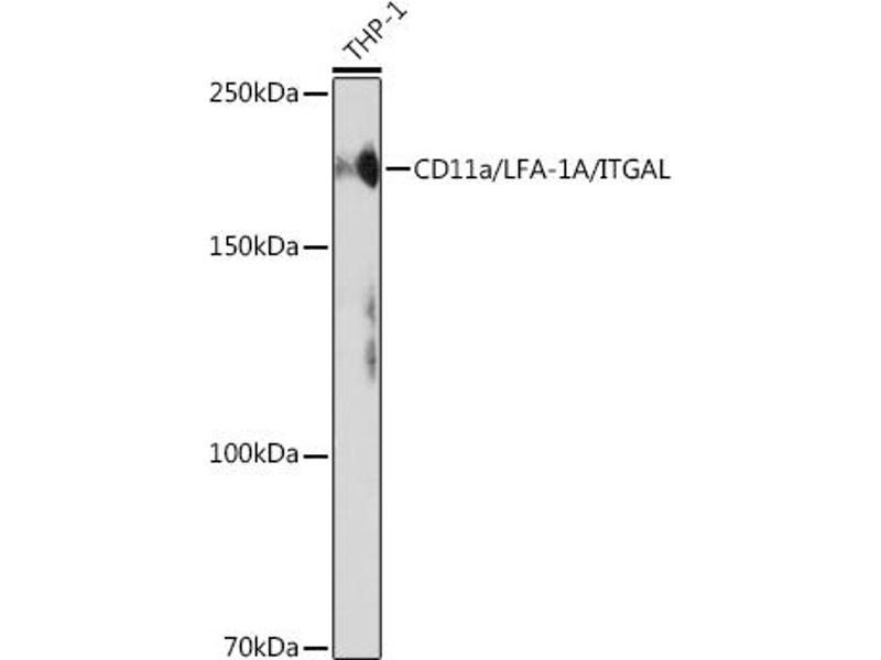 ITGAL encodes the integrin alpha L chain. Integrins are heterodimeric integral membrane proteins composed of an alpha chain and a beta chain. This I-domain containing alpha integrin combines with the beta 2 chain (ITGB2) to form the integrin lymphocyte function-associated antigen-1 (LFA-1), which is expressed on all leukocytes. LFA-1 plays a central role in leukocyte intercellular adhesion through interactions with its ligands, ICAMs 1-3 (intercellular adhesion molecules 1 through 3), and also functions in lymphocyte costimulatory signaling. Two transcript variants encoding different isoforms have been found for this gene. [provided by RefSeq, Jul 2008],CD11A,LFA-1,LFA1A,CD11a,ITGAL,CDs,Cell Adhesion,Cell Biology & Developmental Biology,Cytoskeleton,Hematopoietic Progenitors,Immunology & Inflammation,MAPK-Erk Signaling Pathway,PI3K-Akt Signaling Pathway,Signal Transduction,Stem Cells,T Cell Receptor Signaling Pathway,ITGAL
