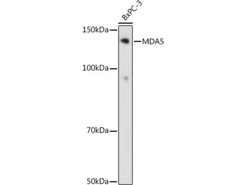 DEAD box proteins, characterized by the conserved motif Asp-Glu-Ala-Asp (DEAD), are putative RNA helicases. They are implicated in a number of cellular processes involving alteration of RNA secondary structure such as translation initiation, nuclear and mitochondrial splicing, and ribosome and spliceosome assembly. Based on their distribution patterns, some members of this family are believed to be involved in embryogenesis, spermatogenesis, and cellular growth and division. This gene encodes a DEAD box protein that is upregulated in response to treatment with beta-interferon and a protein kinase C-activating compound, mezerein. Irreversible reprogramming of melanomas can be achieved by treatment with both these agents, treatment with either agent alone only achieves reversible differentiation. Genetic variation in this gene is associated with diabetes mellitus insulin-dependent type 19. [provided by RefSeq, Jul 2012],AGS7, Hlcd, IDDM19, MDA-5, MDA5, RLR-2, SGMRT1,Apoptosis,Cell Biology & Developmental Biology,Cell Intrinsic Innate Immunity Signaling Pathway,Cytokines,Cytokines_Interferons,Epigenetics & Nuclear Signaling,Immunology & Inflammation,IFIH1