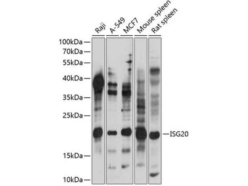 Interferon-induced antiviral exoribonuclease that acts on single-stranded RNA and also has minor activity towards single-stranded DNA. Exhibits antiviral activity against RNA viruses including hepatitis C virus (HCV, hepatitis A virus (HAV and yellow fever virus (YFV in an exonuclease-dependent manner. May also play additional roles in the maturation of snRNAs and rRNAs, and in ribosome biogenesis.,ISG20,CD25,HEM45,Epigenetics & Nuclear Signaling,Immunology & Inflammation,Cytokines,Interferons,Cell Intrinsic Innate Immunity Signaling Pathway,ISG20