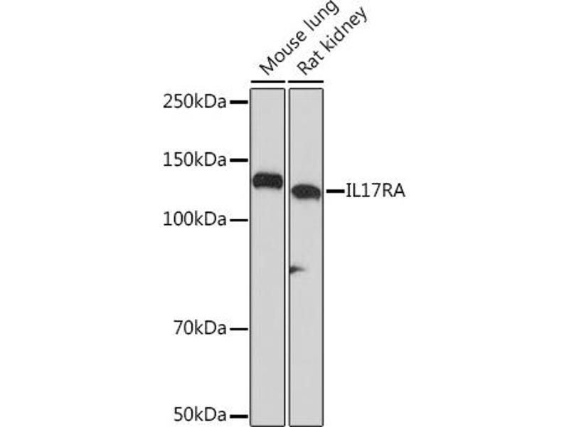 Interleukin 17A (IL17A) is a proinflammatory cytokine secreted by activated T-lymphocytes. It is a potent inducer of the maturation of CD34-positive hematopoietic precursors into neutrophils. The transmembrane protein encoded by this gene (interleukin 17A receptor, IL17RA) is a ubiquitous type I membrane glycoprotein that binds with low affinity to interleukin 17A. Interleukin 17A and its receptor play a pathogenic role in many inflammatory and autoimmune diseases such as rheumatoid arthritis. Like other cytokine receptors, this receptor likely has a multimeric structure. Alternative splicing results in multiple transcript variants encoding different isoforms. [provided by RefSeq, Feb 2014],CANDF5, CD217, CDw217, IL-17RA, IL17R, IMD51, hIL-17R,CDs,Cell Intrinsic Innate Immunity Signaling Pathway,Cytokines,Cytokines_Interleukins,Immunology & Inflammation,IL17RA