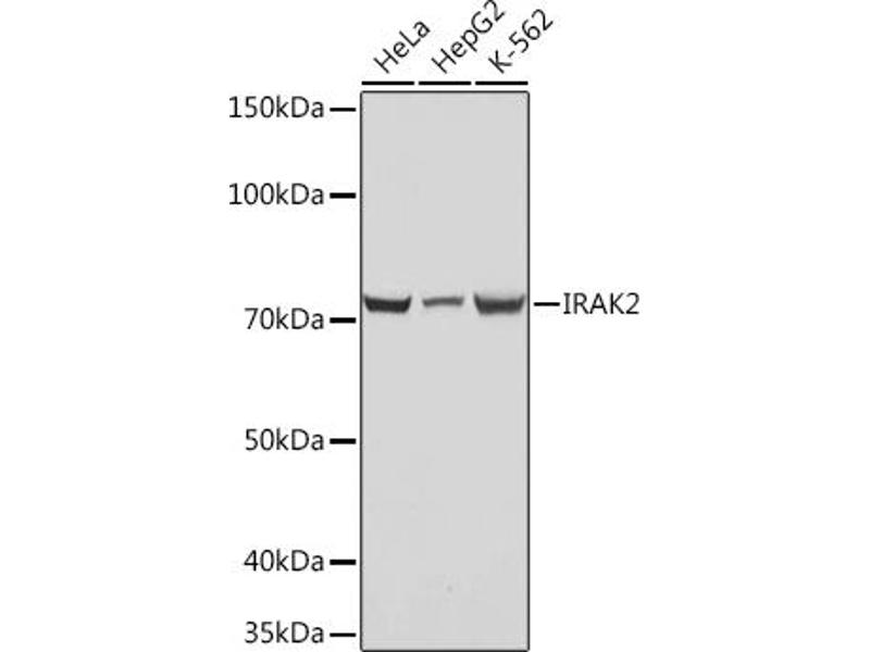 The Rabbit Monoclonal anti-IRAK2 antibody has been validated for WB and IHC. It is suitable to detect IRAK2 in samples from Human.