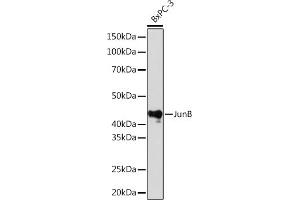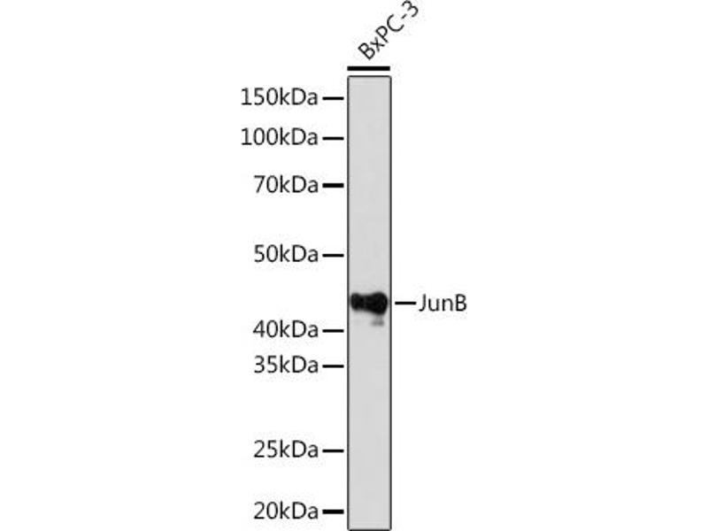 JunB is one of the components of the Activator Protein-1 (AP-1) transcription complex that have been implicated in the control ofthe G0/G1 transtion in fibroblasts. AP-1 is a collection of dimers formed by members of the Jun-, Fos-, ATF- and Maf multigene families that bind to specific DNA regulatory elements called AP-1/12-O-tetradecanoylphorbol-13-acetate-responsive elements (TREs) and cAMP-responsive elements (CREs). JunB binds to the DNA sequence 5'-TGA[CG]TCA-3', and involves in the regulation of gene activity following the primary growth factor response. It also acts either as a tumor suppressor or as an oncogene depending on the cell and physiopathological context,AP-1,Cancer,Epigenetics & Nuclear Signaling,Transcription Factors,JUNB