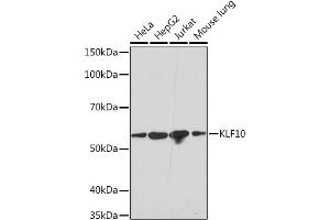 This gene encodes a member of a family of proteins that feature C2H2-type zinc finger domains. The encoded protein is a transcriptional repressor that acts as an effector of transforming growth factor beta signaling. Activity of this protein may inhibit the growth of cancers, particularly pancreatic cancer. Alternative splicing results in multiple transcript variants. [provided by RefSeq, Jun 2013],EGR-alpha, EGRA, TIEG, TIEG1,Cancer,Cardiovascular,Cell Biology & Developmental Biology,Epigenetics & Nuclear Signaling,Growth factors,Heart,Heart_Hypertrophy,Nuclear Receptor Signaling,Nuclear Receptor Signaling_Nuclear hormone receptors,Signal Transduction,Transcription Factors,KLF10