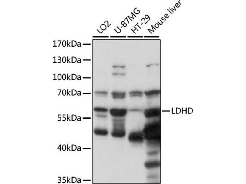 The protein encoded by this gene belongs to the D-isomer specific 2-hydroxyacid dehydrogenase family. The similar protein in yeast has both D-lactate and D-glycerate dehydrogenase activities. Alternative splicing occurs at this locus and two transcript variants encoding distinct isoforms have been identified.,LDHD,DLD,Cancer,Tumor biomarkers,Signal Transduction,Endocrine & Metabolism,LDHD