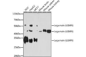 This gene encodes a cysteine protease that has a strict specificity for hydrolysis of asparaginyl bonds. This enzyme may be involved in the processing of bacterial peptides and endogenous proteins for MHC class II presentation in the lysosomal/endosomal systems. Enzyme activation is triggered by acidic pH and appears to be autocatalytic. Protein expression occurs after monocytes differentiate into dendritic cells. A fully mature, active enzyme is produced following lipopolysaccharide expression in mature dendritic cells. Overexpression of this gene may be associated with the majority of solid tumor types. This gene has a pseudogene on chromosome 13. Several alternatively spliced transcript variants have been described, but the biological validity of only two has been determined. These two variants encode the same isoform. [provided by RefSeq, Jul 2008],AEP, LGMN1, PRSC1,Cancer,Cell Biology & Developmental Biology,Cytoskeleton,Endocrine & Metabolism,Extracellular Matrix,Extracellular Matrix_Bone,Immunology & Inflammation,Signal Transduction,Ubiquitin,LGMN
