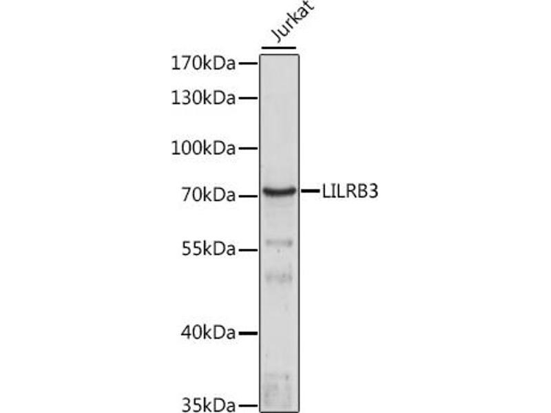 This gene is a member of the leukocyte immunoglobulin-like receptor (LIR) family, which is found in a gene cluster at chromosomal region 19q13.4. The encoded protein belongs to the subfamily B class of LIR receptors which contain two or four extracellular immunoglobulin domains, a transmembrane domain, and two to four cytoplasmic immunoreceptor tyrosine-based inhibitory motifs (ITIMs). The receptor is expressed on immune cells where it binds to MHC class I molecules on antigen-presenting cells and transduces a negative signal that inhibits stimulation of an immune response. It is thought to control inflammatory responses and cytotoxicity to help focus the immune response and limit autoreactivity. Multiple transcript variants encoding different isoforms have been found for this gene.,LILRB3,CD85A,HL9,ILT-5,ILT5,LILRA6,LIR-3,LIR3,PIR-B,PIRB,Immunology & Inflammation,CD markers,B Cell Receptor Signaling Pathway,LILRB3