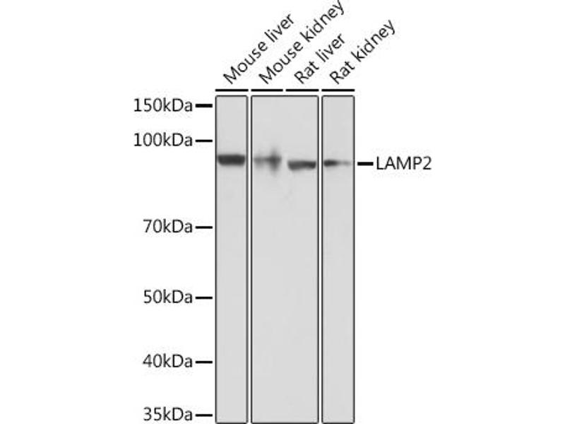 The protein encoded by this gene is a member of a family of membrane glycoproteins. This glycoprotein provides selectins with carbohydrate ligands. It may play a role in tumor cell metastasis. It may also function in the protection, maintenance, and adhesion of the lysosome. Alternative splicing of this gene results in multiple transcript variants encoding distinct proteins. [provided by RefSeq, Jul 2008],CD107b, LAMP-2, LAMPB, LGP-96, LGP110,Autophagy,Cancer,Cardiovascular,CDs,Cell Biology & Developmental Biology,Endocrine & Metabolism,Heart,Hematopoietic Progenitors,Immunology & Inflammation,Signal Transduction,Stem Cells,LAMP2