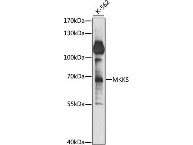 This gene encodes a protein which shares sequence similarity with other members of the type II chaperonin family. The encoded protein is a centrosome-shuttling protein and plays an important role in cytokinesis. This protein also interacts with other type II chaperonin members to form a complex known as the BBSome, which involves ciliary membrane biogenesis. This protein is encoded by a downstream open reading frame (dORF). Several upstream open reading frames (uORFs) have been identified, which repress the translation of the dORF, and two of which can encode small mitochondrial membrane proteins. Mutations in this gene have been observed in patients with Bardet-Biedl syndrome type 6, also known as McKusick-Kaufman syndrome. Alternative splicing results in multiple transcript variants.,MKKS,BBS6,HMCS,KMS,MKS,Signal Transduction,Cell Biology & Developmental Biology,Cell Cycle,Centrosome,Immunology & Inflammation,Cytokines,MKKS
