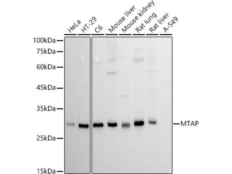 This gene encodes an enzyme that plays a major role in polyamine metabolism and is important for the salvage of both adenine and methionine. The encoded enzyme is deficient in many cancers because this gene and the tumor suppressor p16 gene are co-deleted. Multiple alternatively spliced transcript variants have been described for this gene, but their full-length natures remain unknown.,MTAP,BDMF,DMSFH,DMSMFH,HEL-249,LGMBF,MSAP,c86fus,Cancer,Signal Transduction,Endocrine & Metabolism,Amino acid metabolism,MTAP