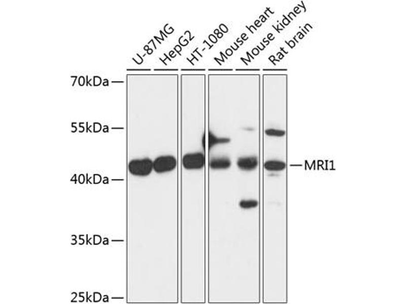 The Rabbit Polyclonal anti-MRI1 antibody (ABIN7268499) specifically detects MRI1 in WB.