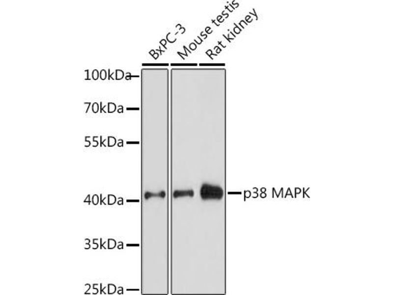 The Rabbit Polyclonal anti-MAPK14 antibody (ABIN7268616) specifically detects MAPK14 in WB, IHC, IF and IP.