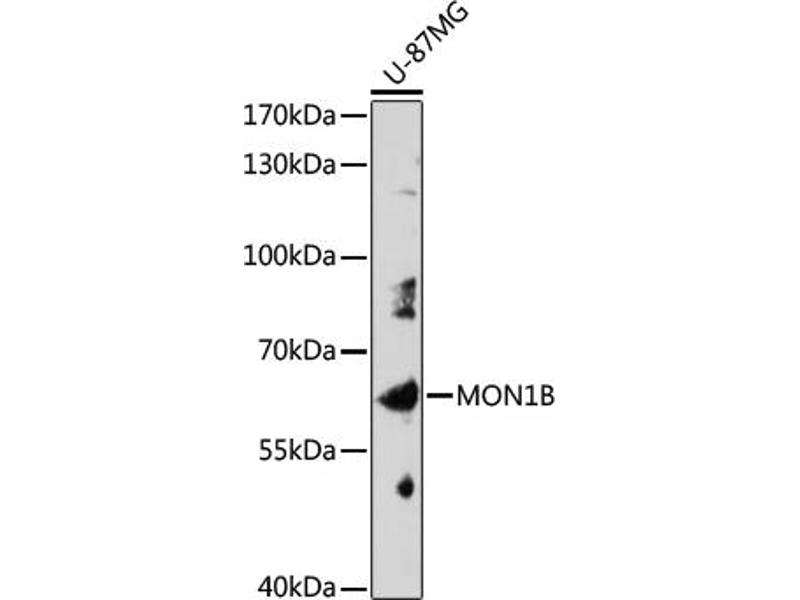 The Rabbit Polyclonal anti-MON1B antibody has been validated for WB. It is suitable to detect MON1B in samples from Human.