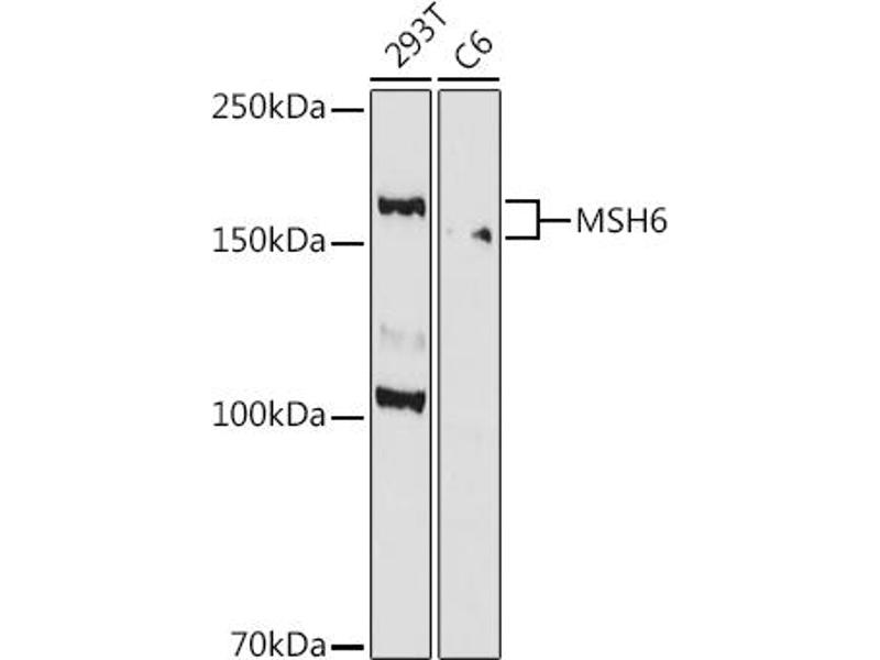 This gene encodes a member of the DNA mismatch repair MutS family. In E. coli, the MutS protein helps in the recognition of mismatched nucleotides prior to their repair. A highly conserved region of approximately 150 aa, called the Walker-A adenine nucleotide binding motif, exists in MutS homologs. The encoded protein heterodimerizes with MSH2 to form a mismatch recognition complex that functions as a bidirectional molecular switch that exchanges ADP and ATP as DNA mismatches are bound and dissociated. Mutations in this gene may be associated with hereditary nonpolyposis colon cancer, colorectal cancer, and endometrial cancer. Transcripts variants encoding different isoforms have been described. [provided by RefSeq, Jul 2013],GTBP, GTMBP, HNPCC5, HSAP, p160,Apoptosis,Cell Biology & Developmental Biology,DNA Damage & Repair,Epigenetics & Nuclear Signaling,MSH6