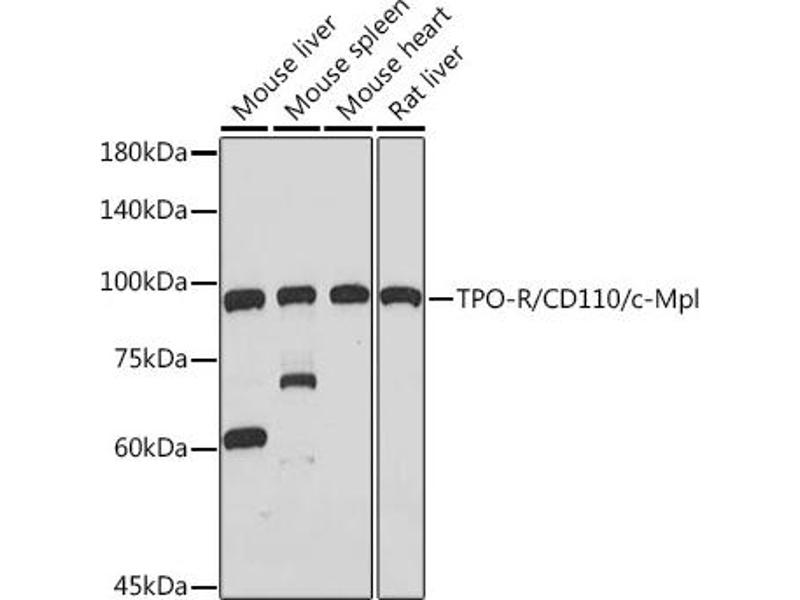 In 1990 an oncogene, v-mpl, was identified from the murine myeloproliferative leukemia virus that was capable of immortalizing bone marrow hematopoietic cells from different lineages. In 1992 the human homologue, named, c-mpl, was cloned. Sequence data revealed that c-mpl encoded a protein that was homologous with members of the hematopoietic receptor superfamily. Presence of anti-sense oligodeoxynucleotides of c-mpl inhibited megakaryocyte colony formation. The ligand for c-mpl, thrombopoietin, was cloned in 1994. Thrombopoietin was shown to be the major regulator of megakaryocytopoiesis and platelet formation. The protein encoded by the c-mpl gene, CD110, is a 635 amino acid transmembrane domain, with two extracellular cytokine receptor domains and two intracellular cytokine receptor box motifs . TPO-R deficient mice were severely thrombocytopenic, emphasizing the important role of CD110 and thrombopoietin in megakaryocyte and platelet formation. Upon binding of thrombopoietin CD110 is dimerized and the JAK family of non-receptor tyrosine kinases, as well as the STAT family, the MAPK family, the adaptor protein Shc and the receptors themselves become tyrosine phosphorylated. [provided by RefSeq, Jul 2008],C-MPL, CD110, MPLV, THCYT2, TPOR,CDs,Hematopoietic Progenitors,Immunology & Inflammation,Stem Cells,MPL
