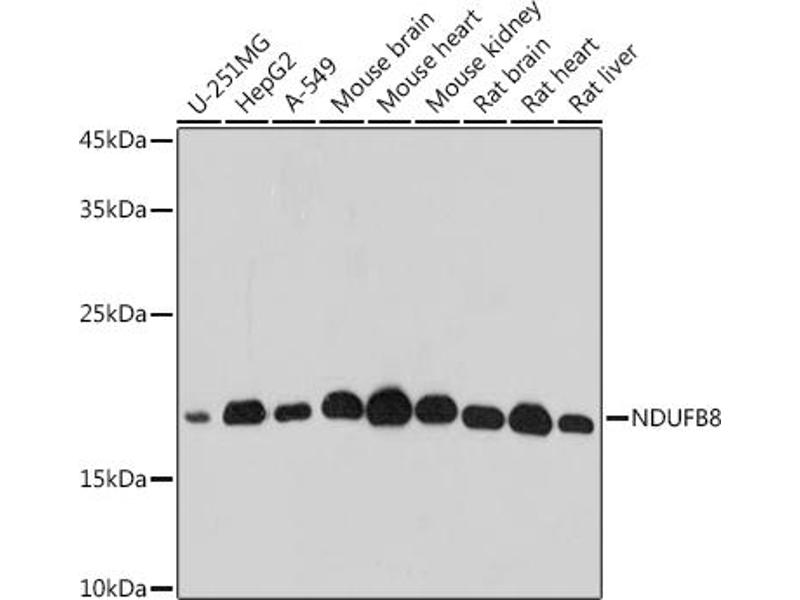 - Accessory subunit of the mitochondrial membrane respiratory chain NADH dehydrogenase (Complex I, that is believed not to be involved in catalysis. Complex I functions in the transfer of electrons from NADH to the respiratory chain. The immediate electron acceptor for the enzyme is believed to be ubiquinone.,ASHI, CI-ASHI,Endocrine & Metabolism,Mitochondrial metabolism,Mitochondrial metabolism_Mitochondrial markers,Mitochondrial metabolism_Oxidative phosphorylation,Neurodegenerative Diseases,Neuroscience,Signal Transduction,NDUFB8