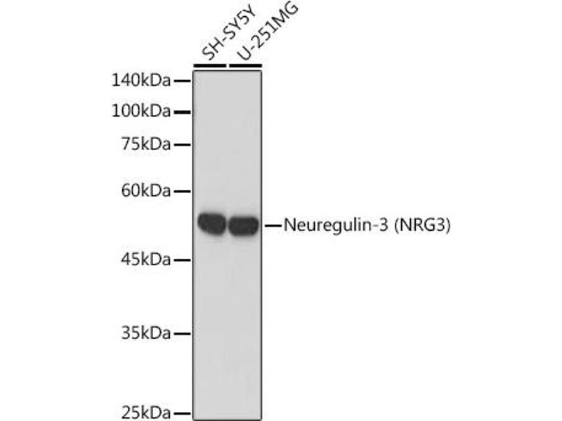 This gene is a member of the neuregulin gene family. This gene family encodes ligands for the transmembrane tyrosine kinase receptors ERBB3 and ERBB4 - members of the epidermal growth factor receptor family. Ligand binding activates intracellular signaling cascades and the induction of cellular responses including proliferation, migration, differentiation, and survival or apoptosis. This gene encodes neuregulin 3 (NRG3). NRG3 has been shown to activate the tyrosine phosphorylation of its cognate receptor, ERBB4, and is thought to influence neuroblast proliferation, migration and differentiation by signalling through ERBB4. NRG3 also promotes mammary differentiation during embryogenesis. Linkage studies have implicated this gene as a susceptibility locus for schizophrenia and schizoaffective disorder. Alternative splicing results in multiple transcript variants encoding distinct isoforms. Additional transcript variants have been described but their biological validity has not been verified.[provided by RefSeq, Sep 2009],HRG3, pro-NRG3,Cancer,ErbB-HER Signaling Pathway,Neuroscience,Signal Transduction,NRG3