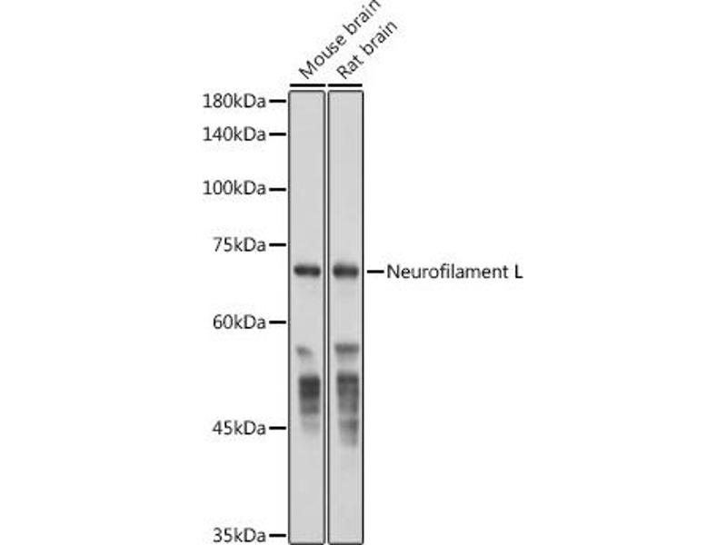 Neurofilaments are type IV intermediate filament heteropolymers composed of light, medium, and heavy chains. Neurofilaments comprise the axoskeleton and they functionally maintain the neuronal caliber. They may also play a role in intracellular transport to axons and dendrites. This gene encodes the light chain neurofilament protein. Mutations in this gene cause Charcot-Marie-Tooth disease types 1F (CMT1F) and 2E (CMT2E), disorders of the peripheral nervous system that are characterized by distinct neuropathies. A pseudogene has been identified on chromosome Y.,NEFL,CMT1F,CMT2E,NF-L,NF68,NFL,PPP1R110,Signal Transduction,Cell Biology & Developmental Biology,Cell Adhesion,Cytoskeleton,Intermediate Filaments,Neuroscience,Cell Type Marker,Neurodegenerative Diseases,Amyloid Plaque and Neurofibrillary Tangle Formation in Alzheimer's Disease,Stem Cells,Neural Stem Cell marker,Neuron marker,Axon marker,NEFL