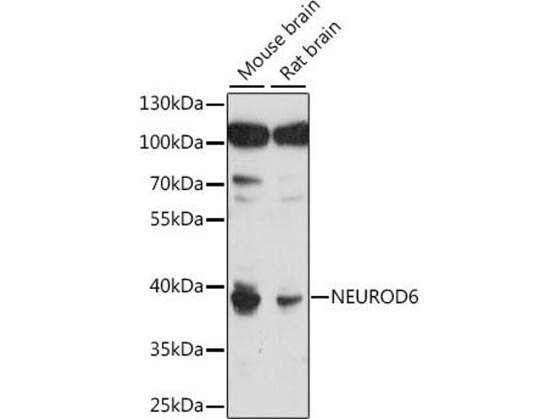 This gene is a member of the NEUROD family of basic helix-loop-helix transcription factors. The encoded protein may be involved in the development and differentiation of the nervous system.,NEUROD6,Atoh2,MATH2,Math-2,NEX1M,Nex1,bHLHa2,Epigenetics & Nuclear Signaling,Transcription Factors,Neuroscience,NEUROD6