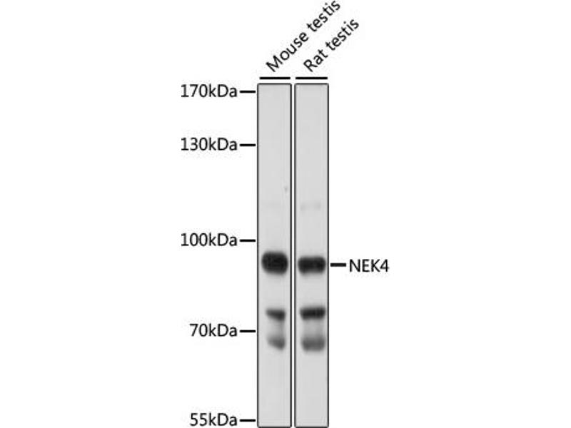 The protein encoded by this gene is a serine/threonine protein kinase required for normal entry into replicative senescence. The encoded protein also is involved in cell cycle arrest in response to double-stranded DNA damage. Finally, this protein plays a role in maintaining cilium integrity, and defects in this gene have been associated with ciliopathies.,NEK4,NRK2,STK2,pp12301,Signal Transduction,Kinase,Cell Biology & Developmental Biology,Cell Cycle,Centrosome,NEK4