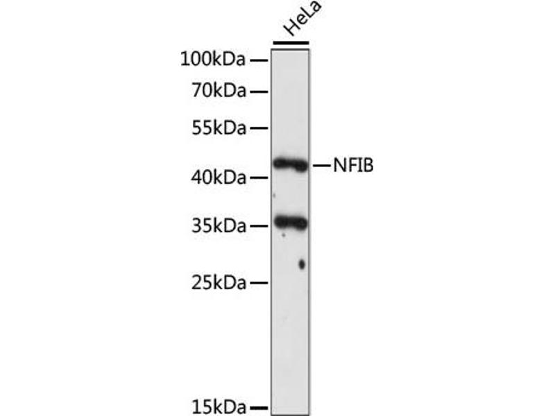 - A synthetic peptide corresponding to a sequence within amino acids 300 to the C-terminus of human NFIB (NP_005587.2).