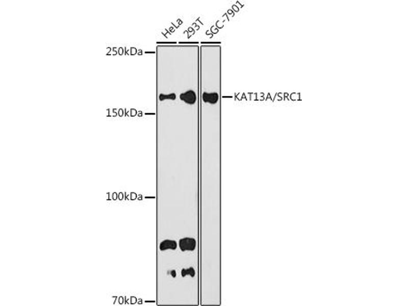 The protein encoded by this gene acts as a transcriptional coactivator for steroid and nuclear hormone receptors. It is a member of the p160/steroid receptor coactivator (SRC) family and like other family members has histone acetyltransferase activity and contains a nuclear localization signal, as well as bHLH and PAS domains. The product of this gene binds nuclear receptors directly and stimulates the transcriptional activities in a hormone-dependent fashion. Alternatively spliced transcript variants encoding different isoforms have been identified. [provided by RefSeq, Jul 2008],F-SRC-1, KAT13A, RIP160, SRC1, bHLHe42, bHLHe74,Cancer,Endocrine & Metabolism,Epigenetic writers and erasers of core Histones,Epigenetic writers and erasers of core Histones_Acetylation,Epigenetics & Nuclear Signaling,Lipid Metabolism,Nuclear Receptor Signaling,Nuclear Receptor Signaling_Nuclear hormone receptors,Signal Transduction,NCOA1