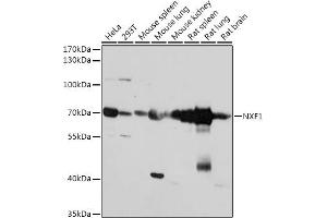 This gene is one member of a family of nuclear RNA export factor genes. Common domain features of this family are a noncanonical RNP-type RNA-binding domain (RBD), 4 leucine-rich repeats (LRRs), a nuclear transport factor 2 (NTF2)-like domain that allows heterodimerization with NTF2-related export protein-1 (NXT1), and a ubiquitin-associated domain that mediates interactions with nucleoporins. The LRRs and NTF2-like domains are required for export activity. Alternative splicing seems to be a common mechanism in this gene family. The encoded protein of this gene shuttles between the nucleus and the cytoplasm and binds in vivo to poly(A)+ RNA. It is the vertebrate homologue of the yeast protein Mex67p. The encoded protein overcomes the mRNA export block caused by the presence of saturating amounts of CTE (constitutive transport element) RNA of type D retroviruses. Alternative splicing results in multiple transcript variants.,NXF1,MEX67,TAP,Epigenetics & Nuclear Signaling,RNA Binding,NXF1