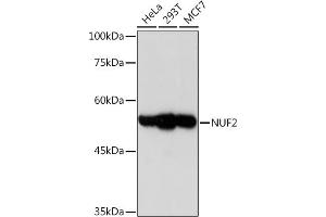 This gene encodes a protein that is highly similar to yeast Nuf2, a component of a conserved protein complex associated with the centromere. Yeast Nuf2 disappears from the centromere during meiotic prophase when centromeres lose their connection to the spindle pole body, and plays a regulatory role in chromosome segregation. The encoded protein is found to be associated with centromeres of mitotic HeLa cells, which suggests that this protein is a functional homolog of yeast Nuf2. Alternatively spliced transcript variants that encode the same protein have been described. [provided by RefSeq, Jul 2008],CDCA1, CT106, NUF2R,Cell Biology & Developmental Biology,Cell Cycle,Cell Cycle_Centromere,NUF2