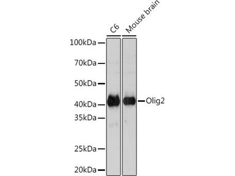 The Rabbit Monoclonal anti-OLIG2 antibody (ABIN7269090) specifically detects OLIG2 in WB. The antibody is reactive with Human samples.