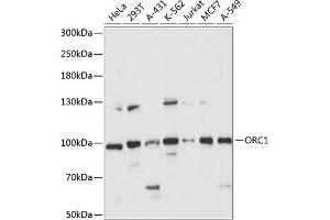 The origin recognition complex (ORC) is a highly conserved six subunits protein complex essential for the initiation of the DNA replication in eukaryotic cells. Studies in yeast demonstrated that ORC binds specifically to origins of replication and serves as a platform for the assembly of additional initiation factors such as Cdc6 and Mcm proteins. The protein encoded by this gene is the largest subunit of the ORC complex. While other ORC subunits are stable throughout the cell cycle, the levels of this protein vary during the cell cycle, which has been shown to be controlled by ubiquitin-mediated proteolysis after initiation of DNA replication. This protein is found to be selectively phosphorylated during mitosis. It is also reported to interact with MYST histone acetyltransferase 2 (MyST2/HBO1), a protein involved in control of transcription silencing. Alternatively spliced transcript variants encoding different isoforms have been found for this gene.,ORC1,HSORC1,ORC1L,PARC1,Epigenetics & Nuclear Signaling,Cell Biology & Developmental Biology,Cell Cycle,Centrosome,ORC1