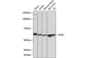 This gene encodes a family member of serine/threonine p21-activating kinases, known as PAK proteins. These proteins are critical effectors that link RhoGTPases to cytoskeleton reorganization and nuclear signaling, and they serve as targets for the small GTP binding proteins Cdc42 and Rac. This specific family member regulates cell motility and morphology. Alternatively spliced transcript variants encoding different isoforms have been found for this gene. [provided by RefSeq, Apr 2010],PAK1,PAKalpha,Apoptosis,Cancer,Cell Biology & Developmental Biology,Cytoskeleton,Cytoskeleton_Actins,Cytoskeleton_Microtubules,Epigenetics & Nuclear Signaling,ErbB-HER Signaling Pathway,Immunology & Inflammation,Kinase,Kinase_Serine/threonine kinases,MAPK-Erk Signaling Pathway,Protein phosphorylation,Signal Transduction,TGF-b-Smad Signaling Pathway,PAK1