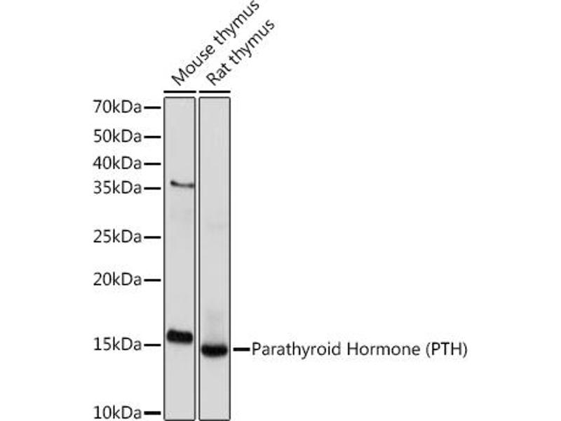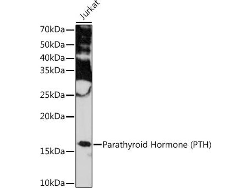 This gene encodes a member of the parathyroid family of proteins. The encoded preproprotein is proteolytically processed to generate a protein that binds to the parathyroid hormone/parathyroid hormone-related peptide receptor and regulates blood calcium and phosphate levels. Excess production of the encoded protein, known as hyperparathyroidism, can result in hypercalcemia and kidney stones. On the other hand, defective processing of the encoded protein may lead to hypoparathyroidism, which can result in hypocalcemia and numbness. Alternative splicing results in multiple transcript variants. [provided by RefSeq, Oct 2015],PTH1,Apoptosis,Cell Biology & Developmental Biology,Growth factors,Signal Transduction,PTH