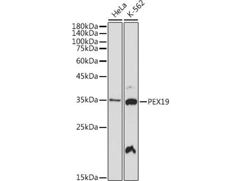 This gene is necessary for early peroxisomal biogenesis. It acts both as a cytosolic chaperone and as an import receptor for peroxisomal membrane proteins (PMPs). Peroxins (PEXs) are proteins that are essential for the assembly of functional peroxisomes. The peroxisome biogenesis disorders (PBDs) are a group of genetically heterogeneous autosomal recessive, lethal diseases characterized by multiple defects in peroxisome function. These disorders have at least 14 complementation groups, with more than one phenotype being observed for some complementation groups. Although the clinical features of PBD patients vary, cells from all PBD patients exhibit a defect in the import of one or more classes of peroxisomal matrix proteins into the organelle. Defects in this gene are a cause of Zellweger syndrome (ZWS), as well as peroxisome biogenesis disorder complementation group 14 (PBD-CG14), which is also known as PBD-CGJ. Alternative splicing results in multiple transcript variants.,PEX19, D1S2223E, HK33, PBD12A, PMP1, PMPI, PXF, PXMP1, peroxisomal biogenesis factor 19,Signal Transduction,PEX19