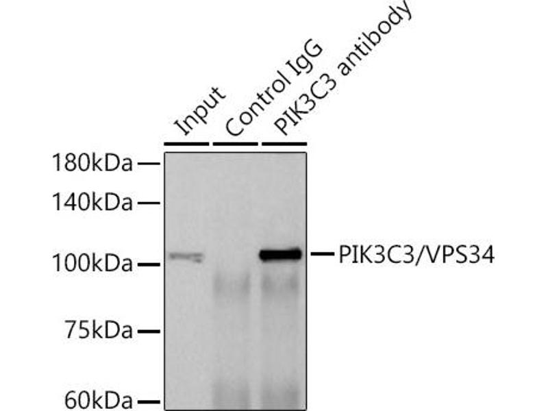 Catalytic subunit of the PI3K complex that mediates formation of phosphatidylinositol 3-phosphate, different complex forms are believed to play a role in multiple membrane trafficking pathways: PI3KC3-C1 is involved in initiation of autophagosomes and PI3KC3-C2 in maturation of autophagosomes and endocytosis. As part of PI3KC3-C1, promotes endoplasmic reticulum membrane curvature formation prior to vesicle budding. Involved in regulation of degradative endocytic trafficking and required for the abcission step in cytokinesis, probably in the context of PI3KC3-C2. Involved in the transport of lysosomal enzyme precursors to lysosomes. Required for transport from early to late endosomes (By similarity.,VPS34, Vps34, hVps34,AMPK Signaling Pathway,Angiogenesis,Apoptosis,Apoptosis_Inhibition of Apoptosis,Apoptosis_Mitochondrial Control of Apoptosis,Autophagy,Autophagy_Regulator,Cardiovascular,Cell Adhesion,Cell Biology & Developmental Biology,Cell Intrinsic Innate Immunity Signaling Pathway,Cytoskeleton,Cytoskeleton_Actins,Cytoskeleton_Microtubules,Endocrine & Metabolism,Epigenetics & Nuclear Signaling,ErbB-HER Signaling Pathway,ESC Pluripotency and Differentiation,IL-6 Receptor Signaling Pathway,Immunology & Inflammation,Innate Immunity_TLR Signaling,Kinase,Lipid Metabolism,MAPK-Erk Signaling Pathway,MAPK-JNK Signaling Pathway,mTOR Signaling Pathway,NF-kB Signaling Pathway,PI3K-Akt Signaling Pathway,PI3K-Akt Signaling Pathway_PI3Ks and related,Signal Transduction,T Cell Receptor Signaling Pathway,TGF-b-Smad Signaling Pathway,Toll-like Receptor Signaling Pathway,Translation Control,Translational Control_Regulation of eIF4 and p70 S6 Kinase,Warburg Effect,PIK3C3