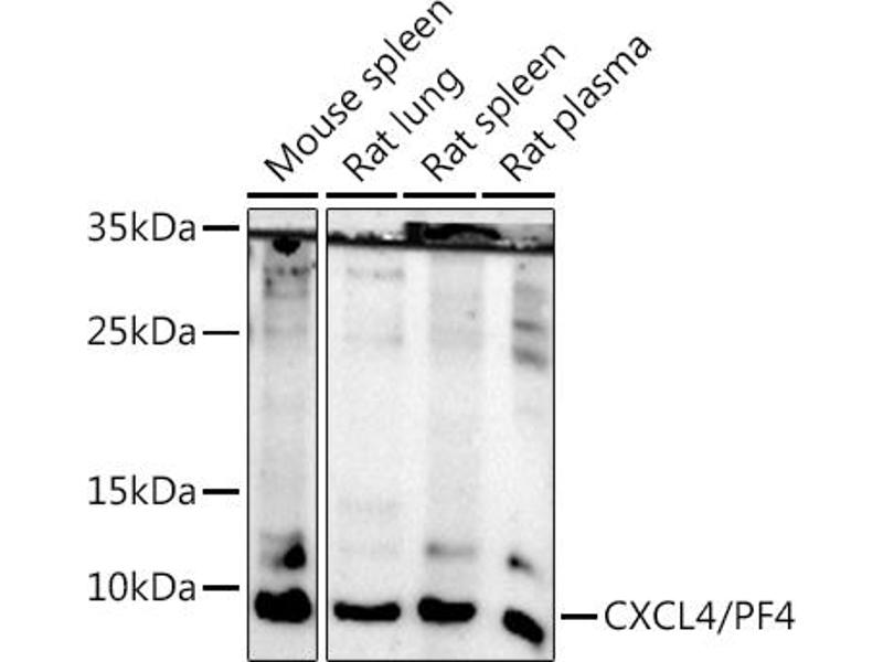 This gene encodes a member of the CXC chemokine family. This chemokine is released from the alpha granules of activated platelets in the form of a homotetramer which has high affinity for heparin and is involved in platelet aggregation. This protein is chemotactic for numerous other cell type and also functions as an inhibitor of hematopoiesis, angiogenesis and T-cell function. The protein also exhibits antimicrobial activity against Plasmodium falciparum.,PF-4,CXCL4,SCYB4,PF4,Immunology & Inflammation,Cytokines,Cell Intrinsic Innate Immunity Signaling Pathway,Chemokines,Chemokine,Cardiovascular,Angiogenesis,Blood,PF4