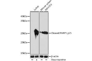 This gene encodes a chromatin-associated enzyme, poly(ADP-ribosyl)transferase, which modifies various nuclear proteins by poly(ADP-ribosyl)ation. The modification is dependent on DNA and is involved in the regulation of various important cellular processes such as differentiation, proliferation, and tumor transformation and also in the regulation of the molecular events involved in the recovery of cell from DNA damage. In addition, this enzyme may be the site of mutation in Fanconi anemia, and may participate in the pathophysiology of type I diabetes. [provided by RefSeq, Jul 2008],ADPRT,ADPRT 1,ADPRT1,ARTD1,PARP,PARP-1,PPOL,pADPRT-1,PARP1,Cleaved PARP,PARP1,Cell Biology & Developmental Biology,Cell Cycle,Cell Cycle_Centrosome,Death Receptor Signaling Pathway,DNA Damage & Repair,Epigenetic writers and erasers of core Histones,Epigenetic writers and erasers of core Histones_other,Epigenetics & Nuclear Signaling,Immunology & Inflammation,NF-kB Signaling Pathway,RNA Binding,Signal Transduction,PARP1