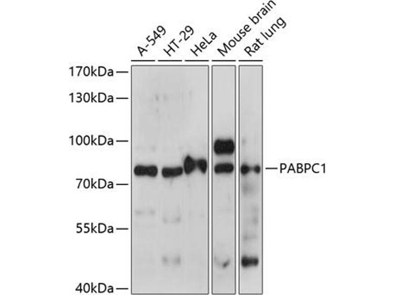 - A synthetic peptide corresponding to a sequence within amino acids 350-450 of human PABPC1 (NP_002559.2).