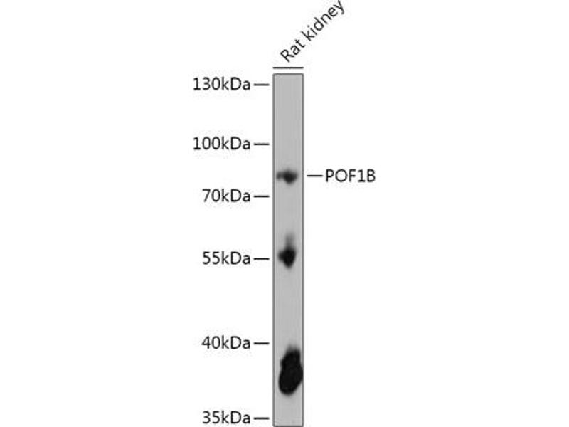 Premature ovarian failure (POF) is characterized by primary or secondary amenorrhea in women less than 40 years old. Two POF susceptibility regions called "POF1" and "POF2" have been identified by breakpoint mapping of X-autosome translocations. POF1 extends from Xq21-qter while POF2 extends from Xq13.3 to Xq21.1. This gene, POF1B, resides in the POF2 region. This gene is expressed at trace levels in mouse prenatal ovary and is barely detectable or absent from adult ovary, in human and in the mouse respectively. This gene's expression is restricted to epithelia with its highest expression in the epidermis, and oro-pharyngeal and gastro-intestinal tracts. The protein encoded by this gene binds non-muscle actin filaments. The role this gene may play in the etiology of premature ovarian failure remains to be determined. [provided by RefSeq, Jan 2010],POF;POF2B;POF1B,Signal Transduction,Cell Biology & Developmental Biology,Cell Adhesion,Tight Junctions,Cytoskeleton,Microfilaments,POF1B