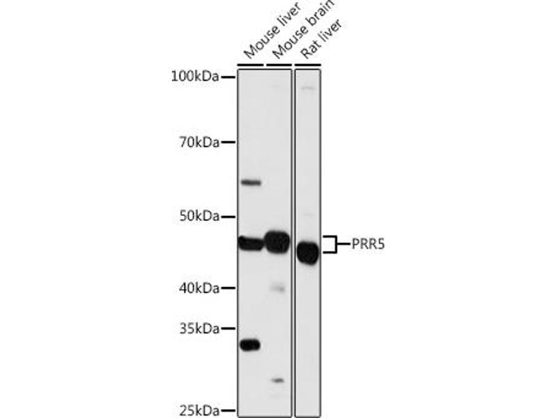 This gene encodes a protein with a proline-rich domain. This gene is located in a region of chromosome 22 reported to contain a tumor suppressor gene that may be involved in breast and colorectal tumorigenesis. The protein is a component of the mammalian target of rapamycin complex 2 (mTORC2), and it regulates platelet-derived growth factor (PDGF) receptor beta expression and PDGF signaling to Akt and S6K1. Alternative splicing and the use of alternative promoters results in transcripts encoding different isoforms. Read-through transcripts from this gene into the downstream Rho GTPase activating protein 8 (ARHGAP8) gene also exist, which led to the original description of PRR5 and ARHGAP8 being a single gene.,PRR5,FLJ20185k,PP610,PROTOR-1,PROTOR1,Epigenetics & Nuclear Signaling,Translation Control,Regulation of eIF4 and p70 S6 Kinase,Cancer,Tumor suppressors,Signal Transduction,mTOR Signaling Pathway,Cell Biology & Developmental Biology,Autophagy,Endocrine & Metabolism,Insulin Receptor Signaling Pathway,PRR5