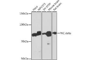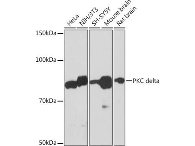 Protein kinase C (PKC) is a family of serine- and threonine-specific protein kinases that can be activated by calcium and the second messenger diacylglycerol. PKC family members phosphorylate a wide variety of protein targets and are known to be involved in diverse cellular signaling pathways. PKC family members also serve as major receptors for phorbol esters, a class of tumor promoters. Each member of the PKC family has a specific expression profile and is believed to play distinct roles in cells. The protein encoded by this gene is one of the PKC family members. Studies both in human and mice demonstrate that this kinase is involved in B cell signaling and in the regulation of growth, apoptosis, and differentiation of a variety of cell types. Alternatively spliced transcript variants encoding the same protein have been observed. [provided by RefSeq, Jul 2008],ALPS3, CVID9, MAY1, PKCD, nPKC-delta,Apoptosis,Apoptosis_Inhibition of Apoptosis,Apoptosis_Mitochondrial Control of Apoptosis,B Cell Receptor Signaling Pathway,Cancer,Cell Biology & Developmental Biology,ErbB-HER Signaling Pathway,G protein signaling,G protein signaling_G-Protein-Coupled Receptors Signaling to MAPK/Erk,Immunology & Inflammation,Kinase,Kinase_Serine/threonine kinases,MAPK-Erk Signaling Pathway,Neuroscience,Phospholipase Signaling Pathway,Protein Kinase C Signaling Pathway Pathway,Protein phosphorylation,Signal Transduction,TGF-b-Smad Signaling Pathway,PRKCD