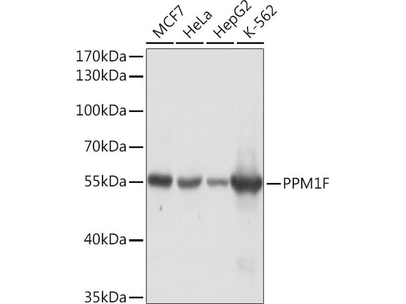The protein encoded by this gene is a member of the PP2C family of Ser/Thr protein phosphatases. PP2C family members are known to be negative regulators of cell stress response pathways. This phosphatase can interact with Rho guanine nucleotide exchange factors (PIX), and thus block the effects of p21-activated kinase 1 (PAK), a protein kinase mediating biological effects downstream of Rho GTPases. Calcium/calmodulin-dependent protein kinase II gamma (CAMK2G/CAMK-II) is found to be one of the substrates of this phosphatase. The overexpression of this phosphatase or CAMK2G has been shown to mediate caspase-dependent apoptosis. An alternatively spliced transcript variant has been identified, but its full-length nature has not been determined.,PPM1F,CAMKP,CaMKPase,FEM-2,POPX2,hFEM-2,Signal Transduction,Kinase,Cell Biology & Developmental Biology,Apoptosis,Neuroscience,Calcium Signaling,PPM1F