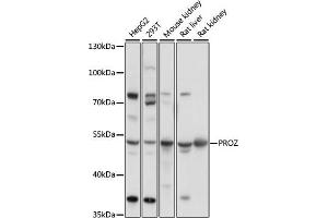 This gene encodes a liver vitamin K-dependent glycoprotein that is synthesized in the liver and secreted into the plasma. The encoded protein plays a role in regulating blood coagulation by complexing with protein Z-dependent protease inhibitor to directly inhibit activated factor X at the phospholipid surface. Deficiencies in this protein are associated with an increased risk of ischemic arterial diseases and fetal loss. Mutations in this gene are the cause of protein Z deficiency. Alternate splicing results in multiple transcript variants.,PROZ,PZ,Cell Biology & Developmental Biology,Ubiquitin,Cardiovascular,Blood,Coagulation,Serum Proteins,PROZ