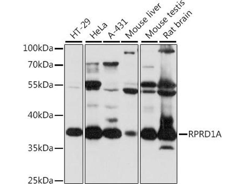 This gene encodes a cell-cycle and transcription regulatory protein. The encoded protein interacts with the cell cycle inhibitor cyclin-dependent kinase 4 inhibitor B and may function as a negative regulator of G(1)/S phase progression. This protein also forms homo- and hetrodimers with the protein, regulation of nuclear pre-mRNA domain-containing protein 1B, to form a scaffold that interacts with the C-terminal domain of RNA polymerase II subunit B1 and regulates several aspects of transcription. Alternate splicing results in multiple transcript variants. A pseudogene of this gene is found on chromosome 16.,RPRD1A,HsT3101,P15RS,Epigenetics & Nuclear Signaling,Cell Biology & Developmental Biology,Cell Cycle,Cell cycle inhibitors,RPRD1A