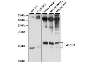 - Mammalian mitochondrial ribosomal proteins are encoded by nuclear genes and help in protein synthesis within the mitochondrion. Mitochondrial ribosomes (mitoribosomes) consist of a small 28S subunit and a large 39S subunit. They have an estimated 75 % protein to rRNA composition compared to prokaryotic ribosomes, where this ratio is reversed. Another difference between mammalian mitoribosomes and prokaryotic ribosomes is that the latter contain a 5S rRNA. Among different species, the proteins comprising the mitoribosome differ greatly in sequence, and sometimes in biochemical properties, which prevents easy recognition by sequence homology. This gene encodes a 28S subunit protein that belongs to the ribosomal protein S14P family. Alternative splicing results in multiple transcript variants.,MRPS14,DJ262D12.2,HSMRPS14,MRP-S14,S14mt,Epigenetics & Nuclear Signaling,Endocrine & Metabolism,Mitochondrial metabolism,Mitochondrial markers,Mitochondrial translation,MRPS14
