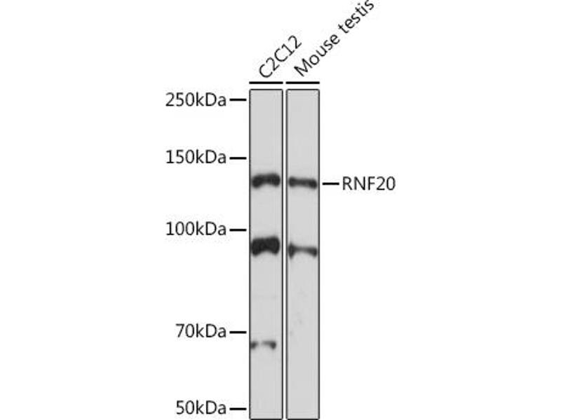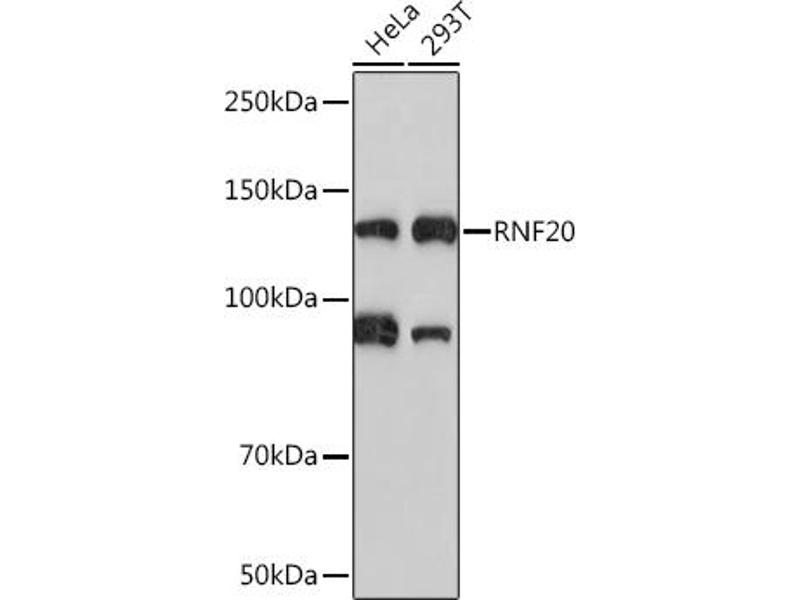 The protein encoded by this gene shares similarity with BRE1 of S. cerevisiae. The protein encoded by this human gene is an E3 ubiquitin ligase that regulates chromosome structure by monoubiquitinating histone H2B. This protein acts as a putative tumor suppressor and positively regulates the p53 tumor suppressor as well as numerous histone H2A and H2B genes. In contrast, this protein also suppresses the expression of several protooncogenes and growth-related genes, including many genes that are induced by epidermal growth factor. This gene selectively suppresses the expression of some genes by interfering with chromatin recruitment of transcription elongation factor SII (TFIIS). [provided by RefSeq, Feb 2012],BRE1, BRE1A, hBRE1,Cell Biology & Developmental Biology,Epigenetic writers and erasers of core Histones,Epigenetic writers and erasers of core Histones_Ubiquitination,Epigenetics & Nuclear Signaling,Histones,Ubiquitin,RNF20