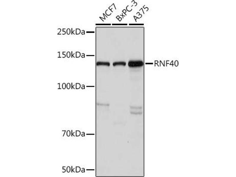 The protein encoded by this gene contains a RING finger, a motif known to be involved in protein-protein and protein-DNA interactions. This protein was reported to interact with the tumor suppressor protein RB1. Studies of the rat counterpart suggested that this protein may function as an E3 ubiquitin-protein ligase, and facilitate the ubiquitination and degradation of syntaxin 1, which is an essential component of the neurotransmitter release machinery. Multiple alternatively spliced transcript variants encoding different isoforms have been found for this gene. [provided by RefSeq, May 2011],BRE1B, RBP95, STARING,Cell Biology & Developmental Biology,Epigenetic writers and erasers of core Histones,Epigenetic writers and erasers of core Histones_Ubiquitination,Epigenetics & Nuclear Signaling,Ubiquitin,RNF40