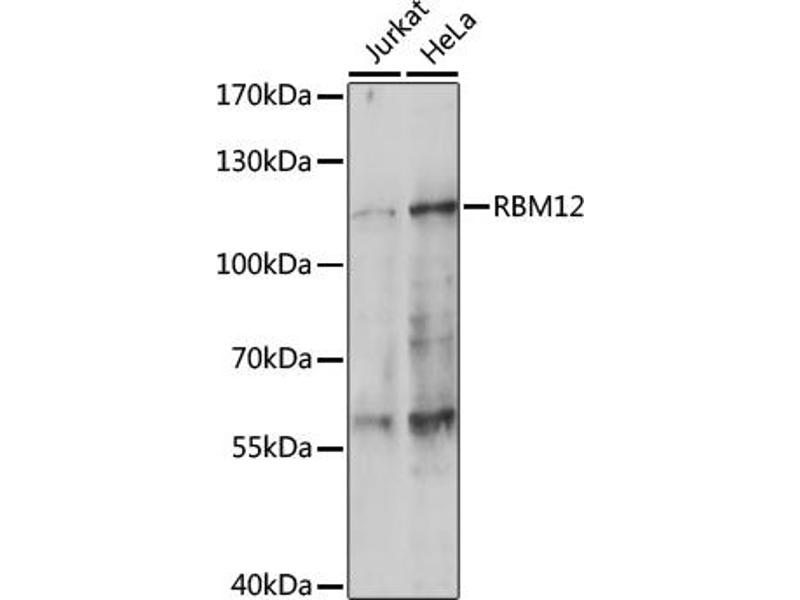- A synthetic peptide corresponding to a sequence within amino acids 800 to the C-terminus of human RBM12 (NP_001185767.1).