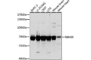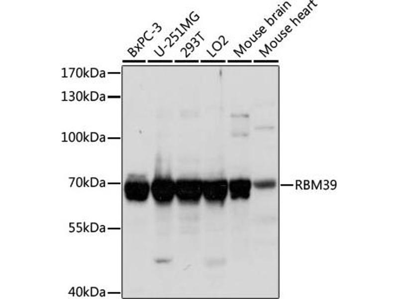 - A synthetic peptide corresponding to a sequence within amino acids 400 to the C-terminus of human RBM39 (NP_001229528.1).